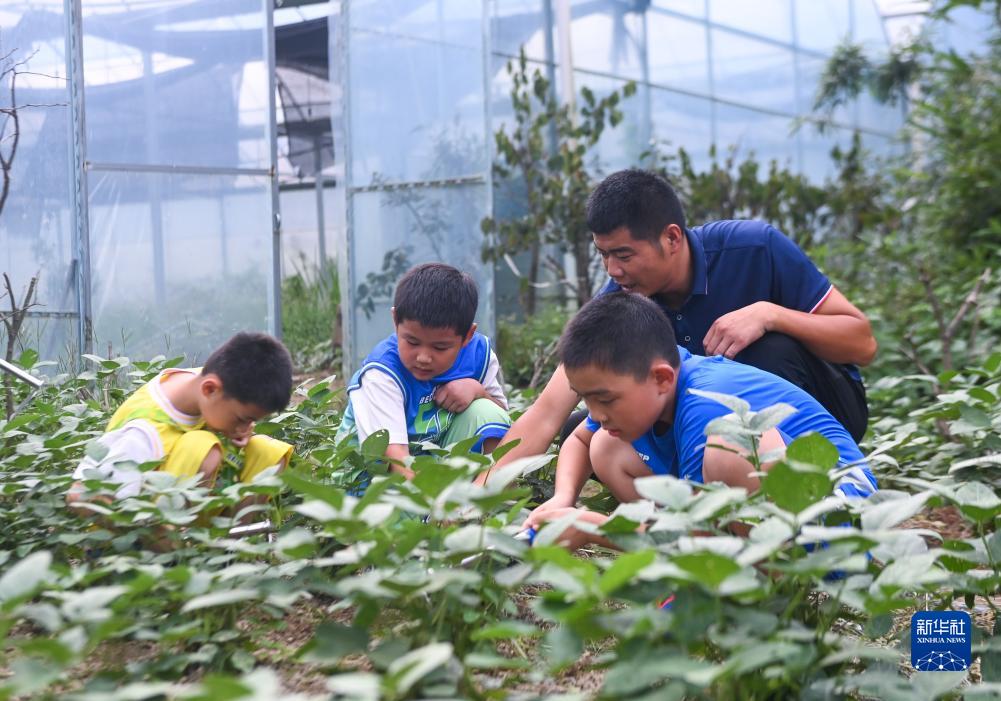 7月18日,在杭州富沈農業(yè)科技開(kāi)發(fā)有限公司的研學(xué)基地內,參加暑期夏令營(yíng)的孩子們在蔬菜地里除草。由銀湖街道新鄉賢打造的杭州富沈農業(yè)科技開(kāi)發(fā)有限公司是集產(chǎn)、學(xué)、研于一體的農業(yè)綜合基地,通過(guò)“農業(yè)+教育+旅游+N”的融合模式,形成了觀(guān)光農業(yè)、農副產(chǎn)品加工、城市廚房、親子體驗等特色文旅項目。