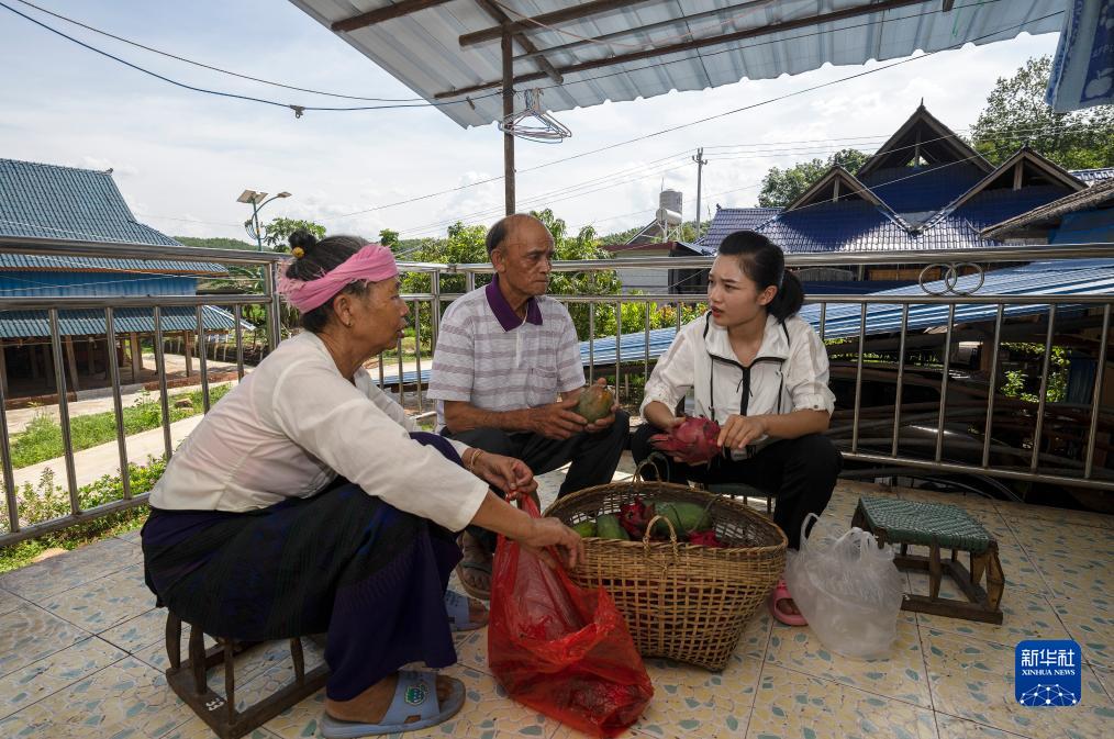 7月16日,依波逢(右)從外公、外婆準備的水果中挑出幾個(gè)帶走,準備到勐臘縣城看望同學(xué)。
