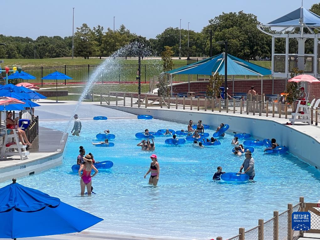 7月18日,人們在美國得克薩斯州達拉斯一處泳池玩水避暑。