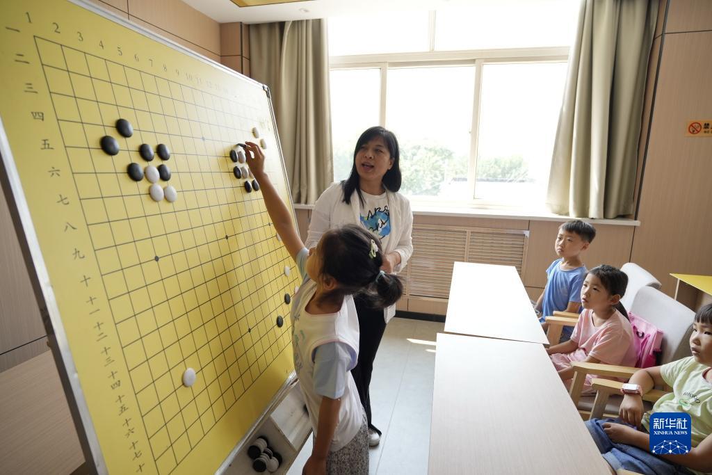 7月19日,孩子們在河北省唐山市豐南區新興社區開(kāi)辦的“愛(ài)心暑托班”上學(xué)習圍棋。