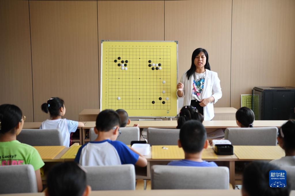 7月19日,老師在河北省唐山市豐南區新興社區開(kāi)辦的“愛(ài)心暑托班”上為孩子們講解圍棋知識。