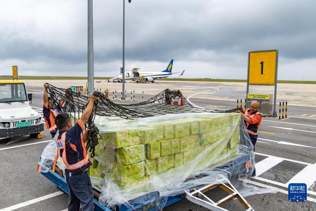 6月28日,在重慶巫山機場(chǎng),工作人員在打包即將由中國郵政航空公司全貨機運送的巫山脆李。