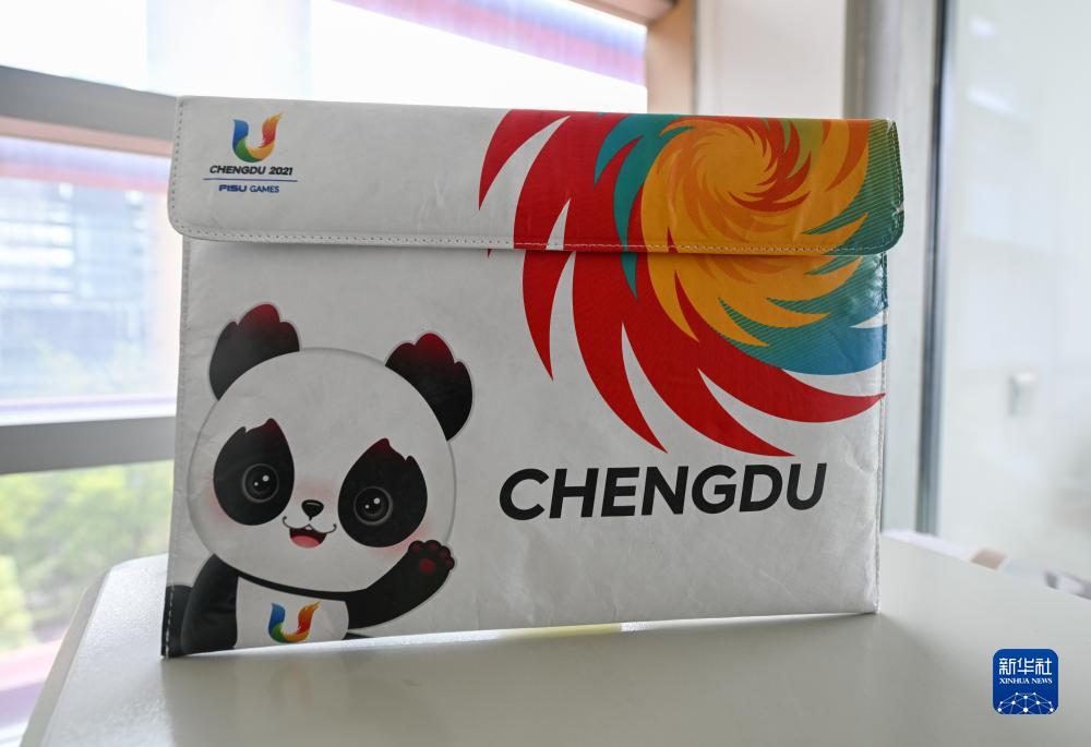 這是7月19日在成都市一家成都大運會(huì )特許商品零售店內拍攝的用環(huán)保材料制作的電腦包。