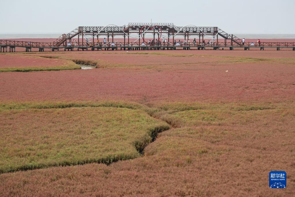 7月19日,游客在紅海灘國家風(fēng)景廊道景區內游玩。