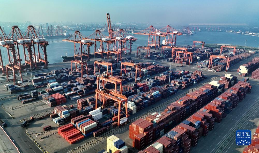 7月19日拍攝的唐山港京唐港區集裝箱碼頭(無(wú)人機照片)。