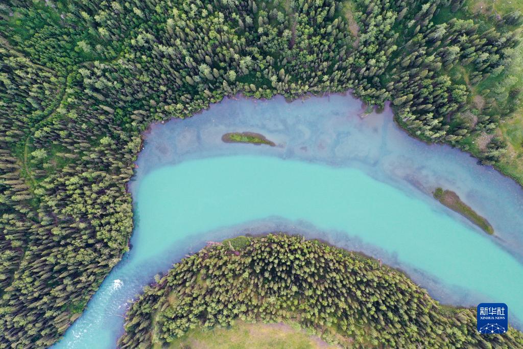 7月19日拍攝的新疆阿勒泰地區喀納斯景區風(fēng)光(無(wú)人機照片)。