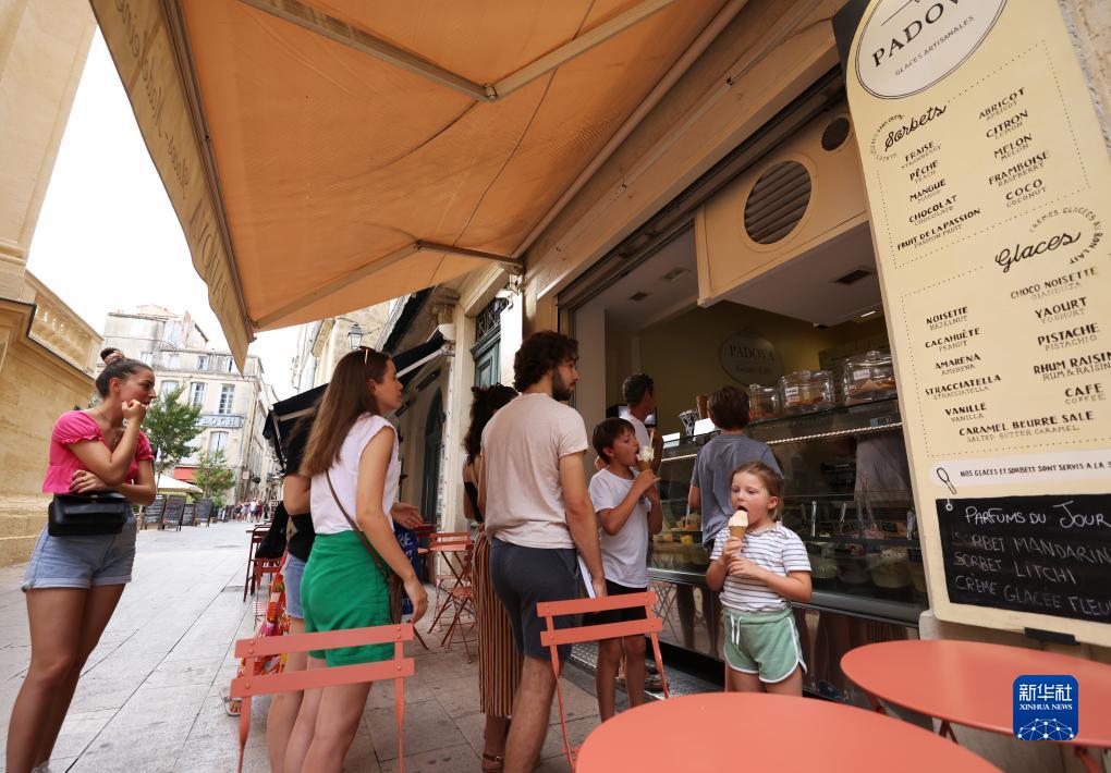 7月18日,在法國南部城市蒙彼利埃,人們排隊買(mǎi)冰激凌。