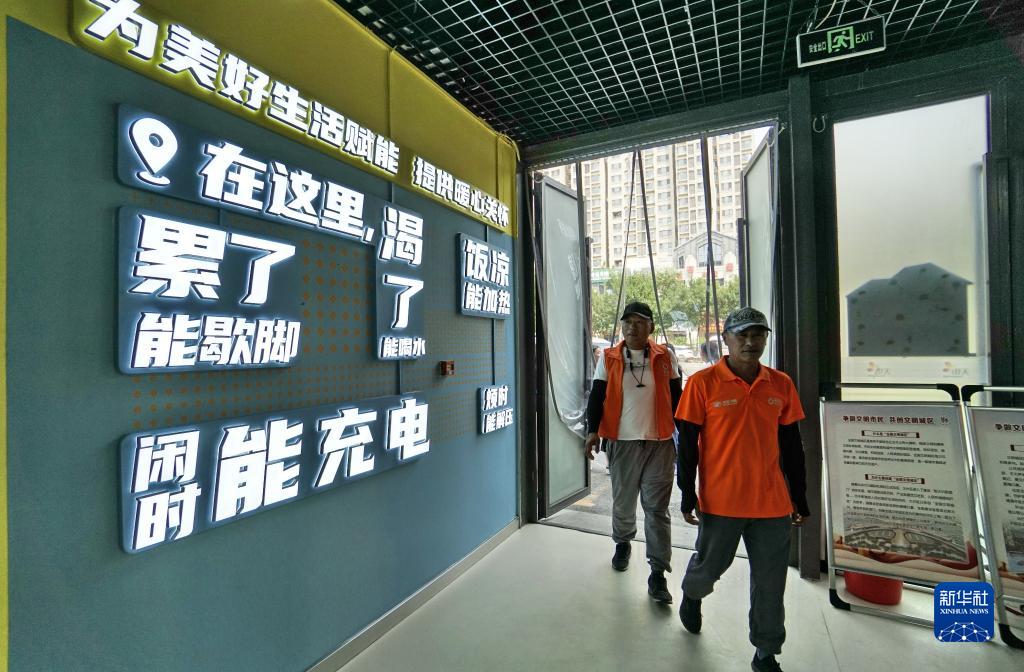 7月19日,兩名超市配送員來(lái)到北京市大興區天宮院街道的一家暖心驛站休息。