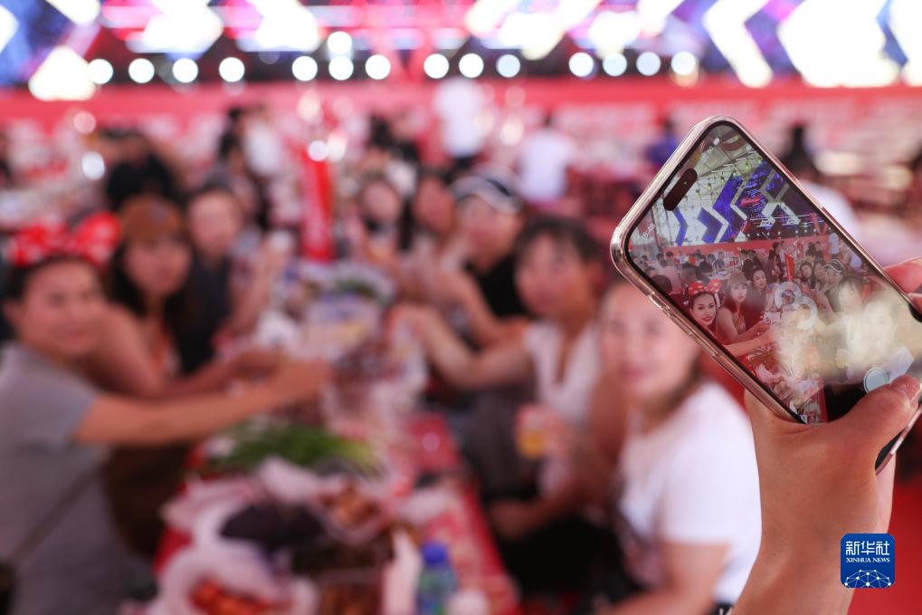 7月20日,顧客在哈爾濱國際啤酒節現場(chǎng)拍照留念。