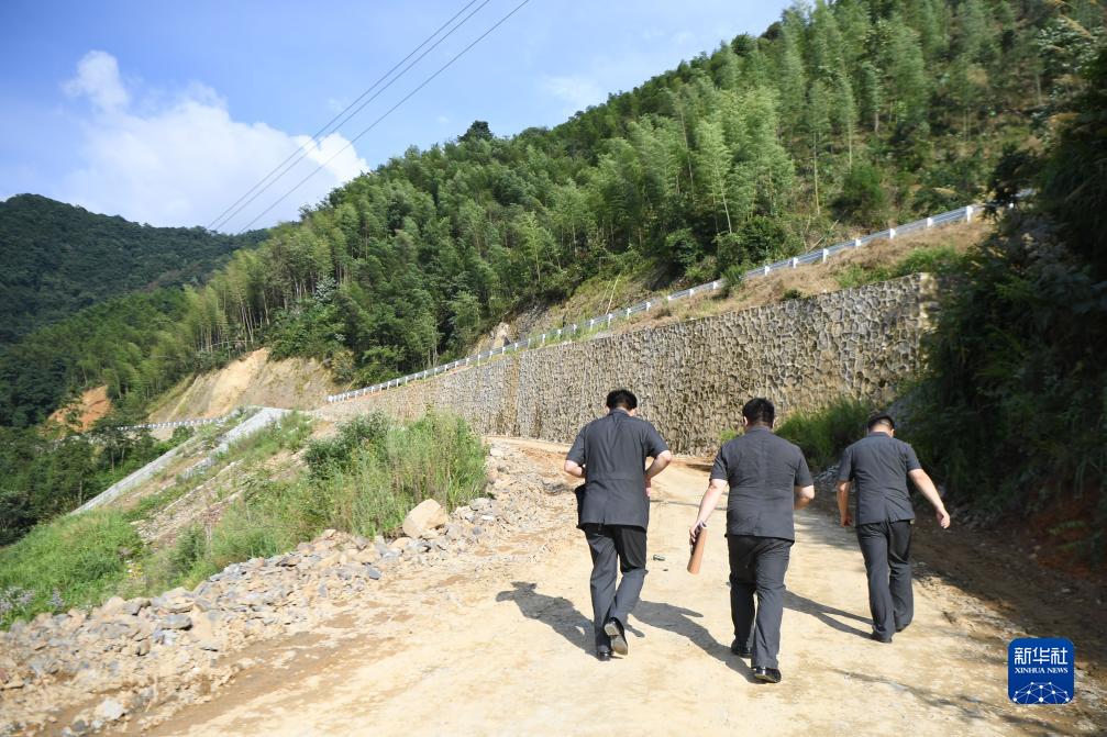 7月19日,安化縣人民法院干警行走在庫區沿岸的柘溪鎮廣益社區。