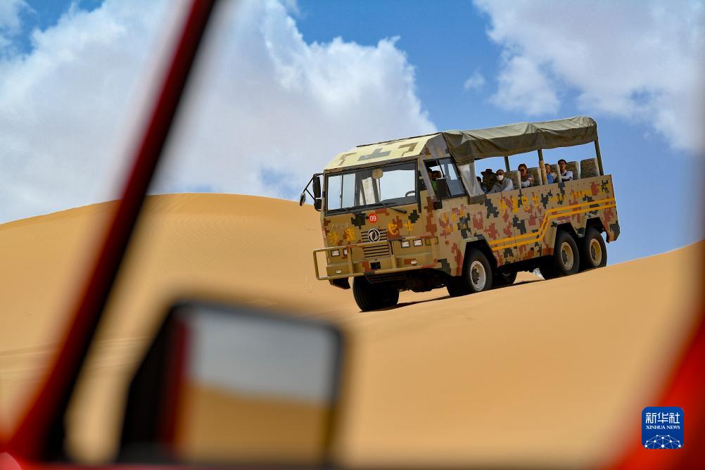 7月20日,游客在寧夏中衛市沙坡頭景區體驗沙漠沖浪車(chē)。