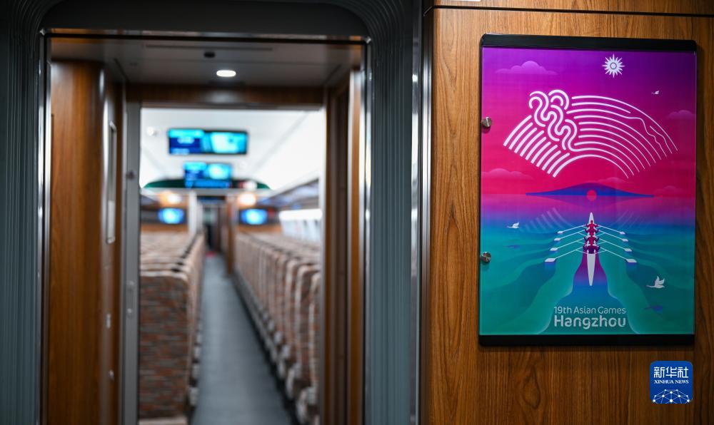 這是7月21日在中車(chē)長(cháng)春軌道客車(chē)股份有限公司拍攝的復興號亞運智能動(dòng)車(chē)組內飾。