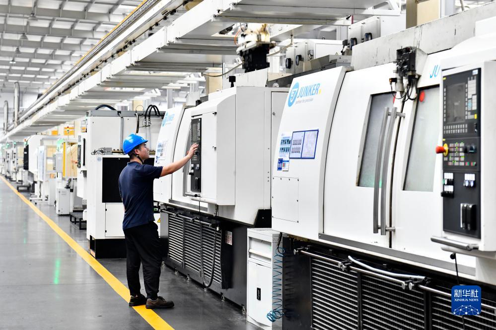 7月21日,在位于威海市文登區的天潤工業(yè)技術(shù)股份有限公司,工人在曲軸自動(dòng)化生產(chǎn)線(xiàn)值守。