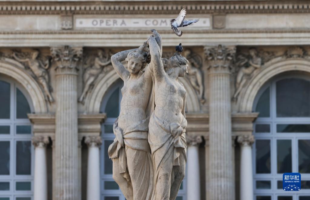 這是法國蒙彼利埃喜劇廣場(chǎng)上的噴泉雕塑(7月17日攝)。