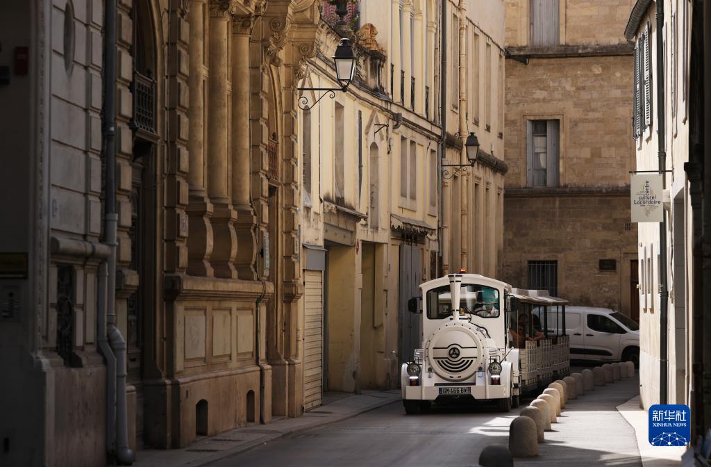 7月19日,旅游觀(guān)光車(chē)行駛在法國蒙彼利埃的街道上。
