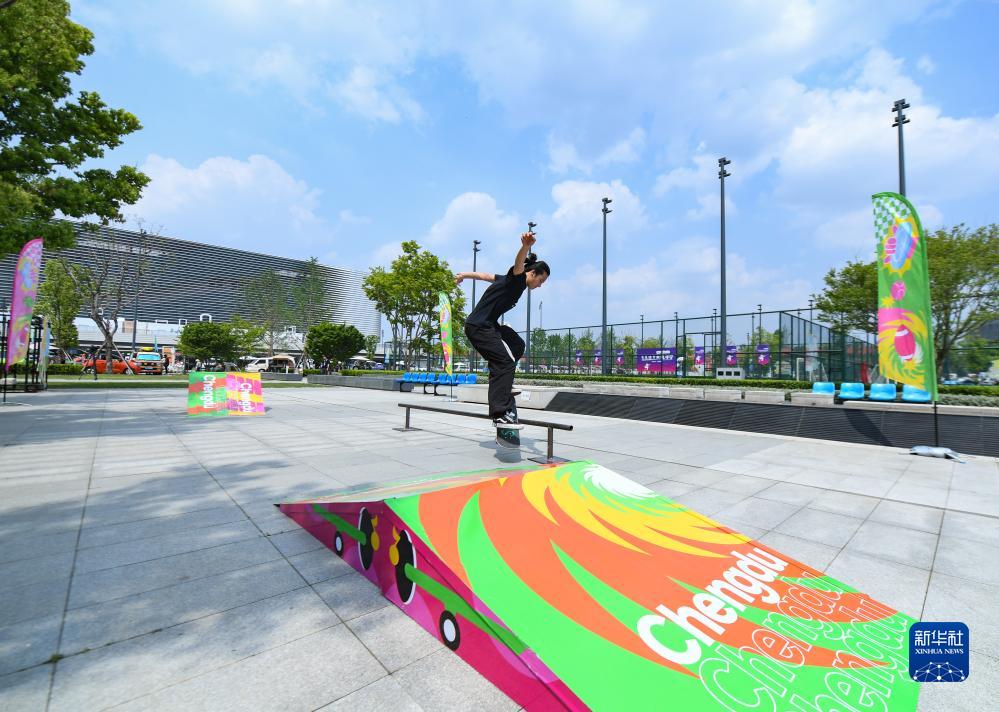 滑板愛(ài)好者在成都東安湖體育公園練習滑板(4月19日攝)。