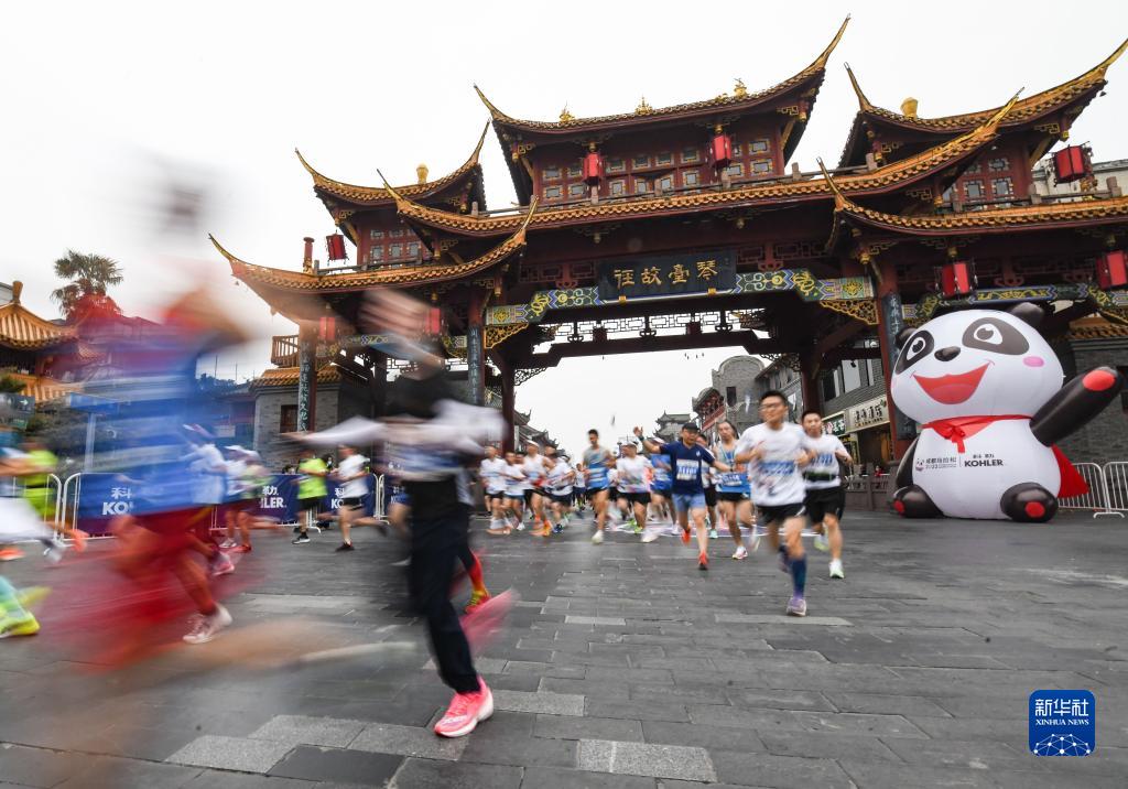 馬拉松愛(ài)好者在比賽中經(jīng)過(guò)成都琴臺路(2022年11月20日攝)。