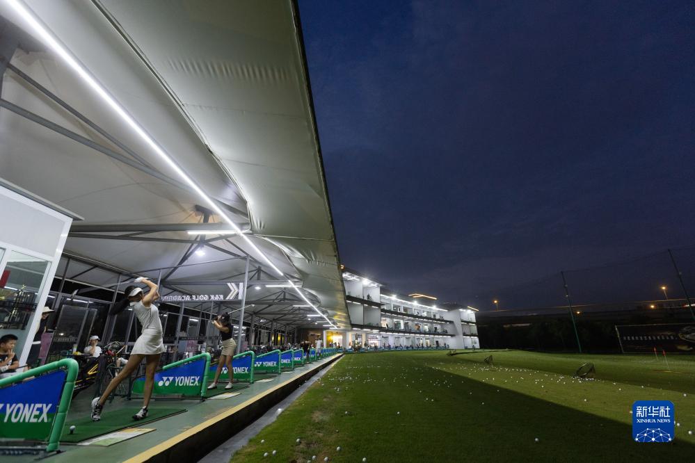 高爾夫球愛(ài)好者在成都新陣地高爾夫練習場(chǎng)練習(7月18日攝)。
