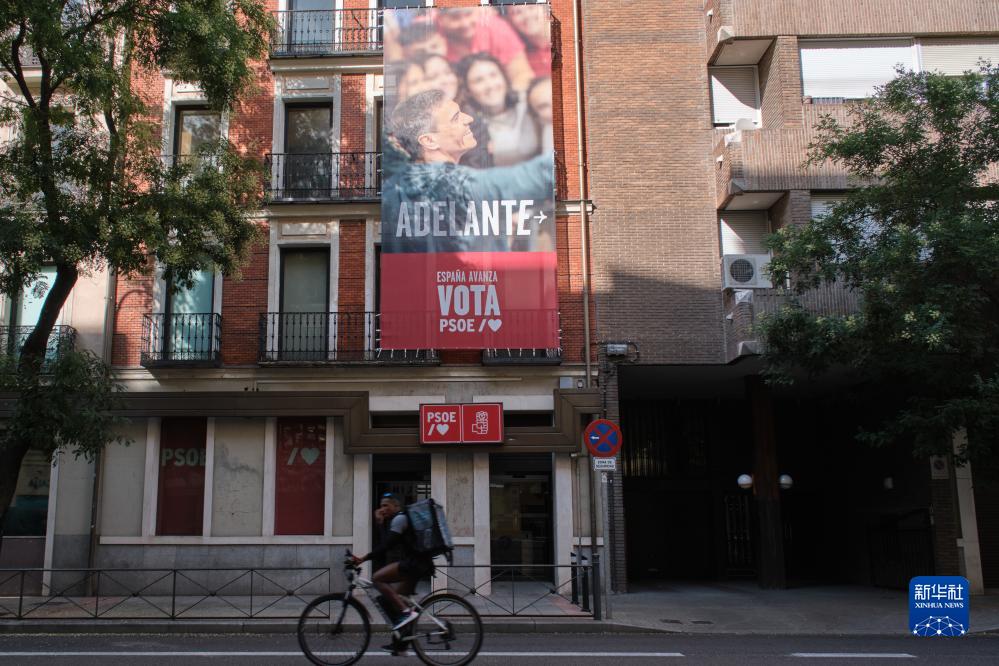 這是7月21日在西班牙馬德里拍攝的工人社會(huì )黨候選人競選廣告。