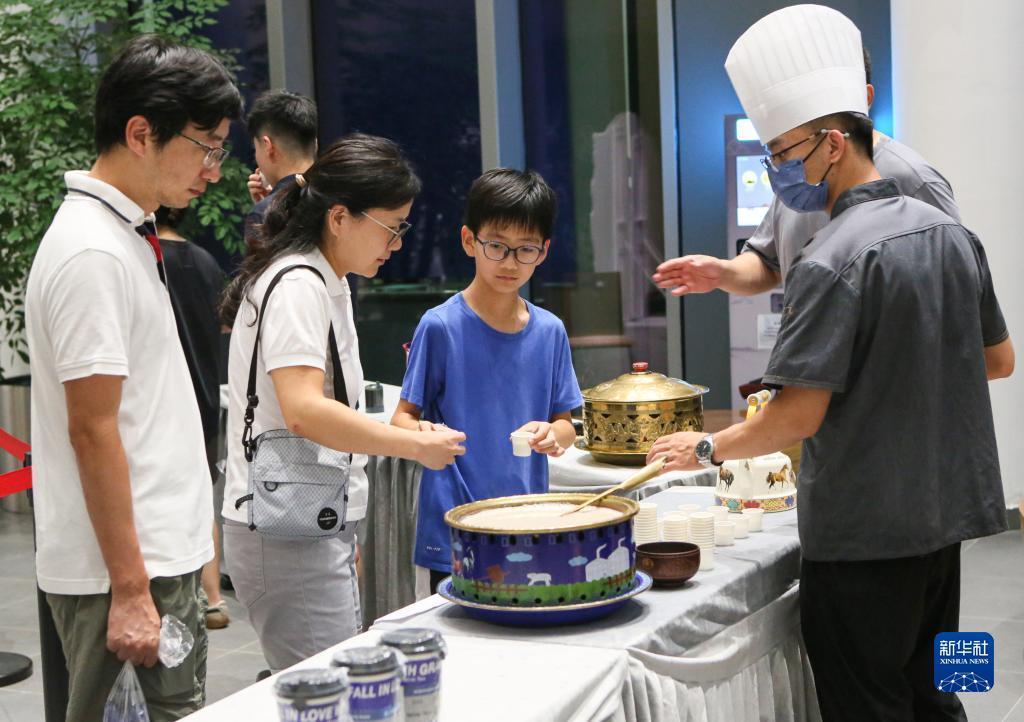 7月21日晚,游客在夜間“那達慕”大會(huì )上品嘗奶茶。