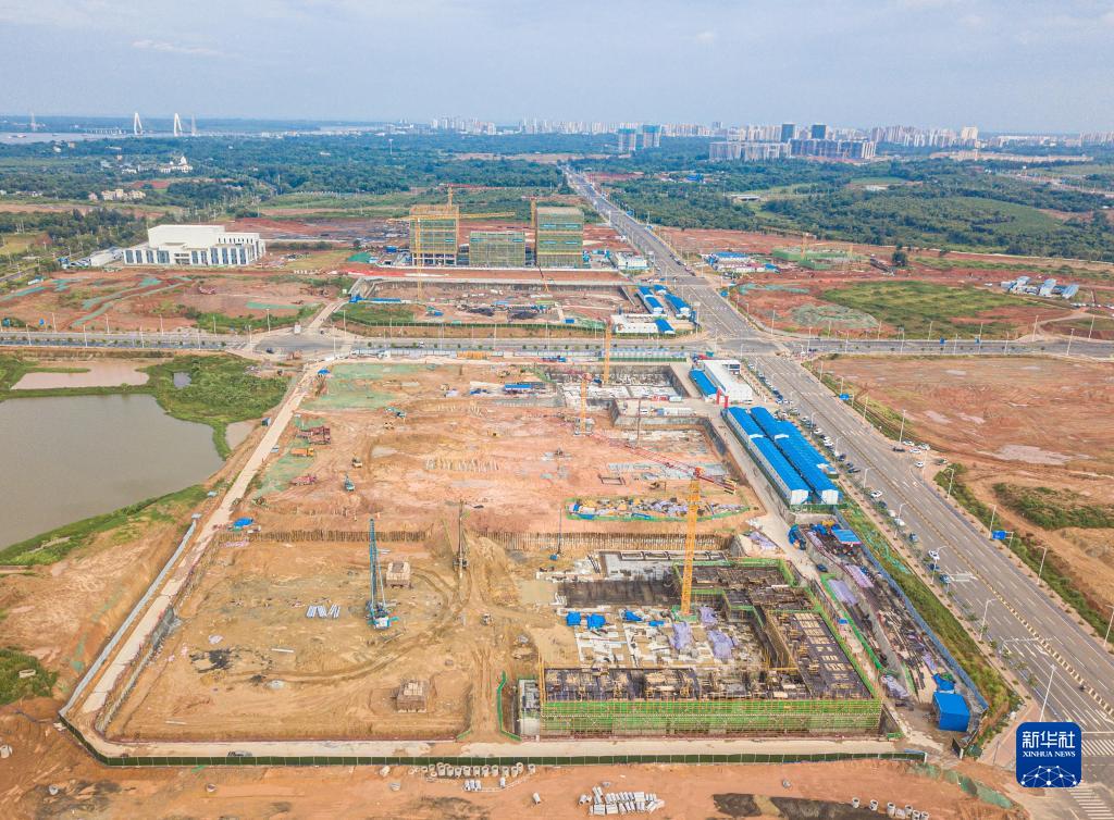 這是在海南文昌國際航天城拍攝的建設中的文昌國際航天城城市綜合體項目(無(wú)人機照片,7月16日攝)。
