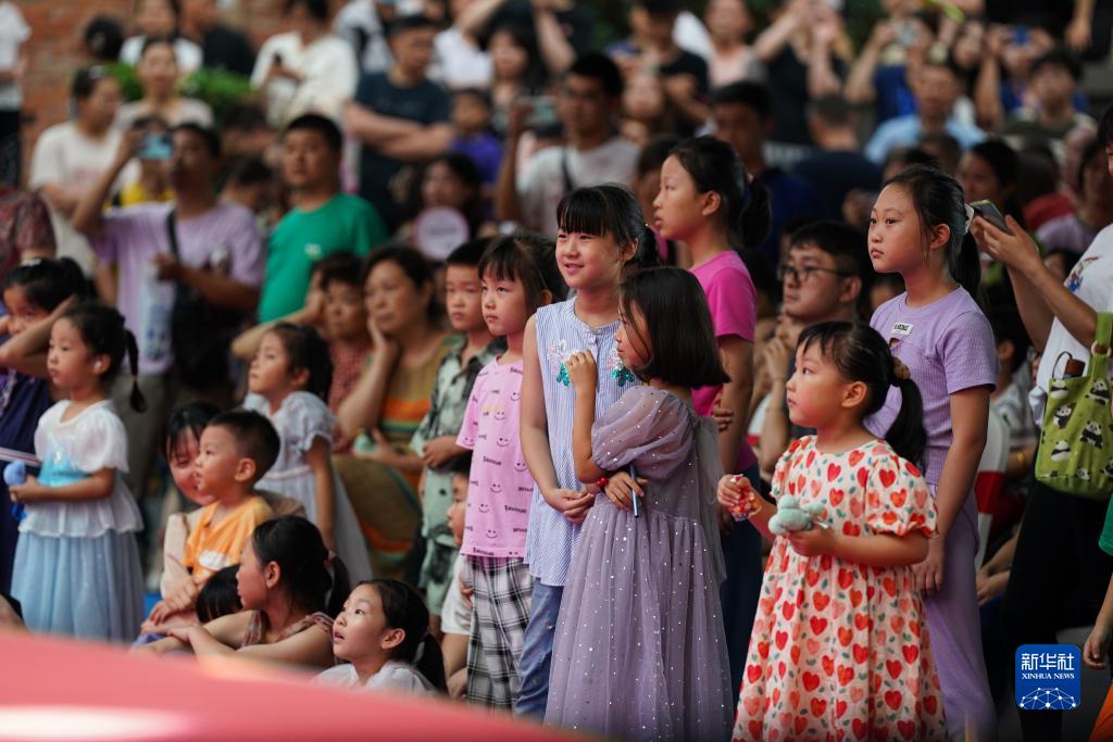 7月21日,市民在安徽省合肥市瑤海區車(chē)橋新界文創(chuàng )街區觀(guān)看馬戲表演。