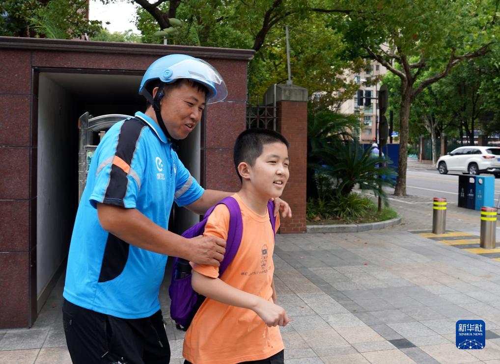 7月19日,小學(xué)生愛(ài)心暑托班放學(xué)時(shí)間,高智明的爸爸來(lái)接孩子回家。高智明是從湖北襄樊來(lái)上海過(guò)暑假和當外賣(mài)騎手的爸爸團聚。