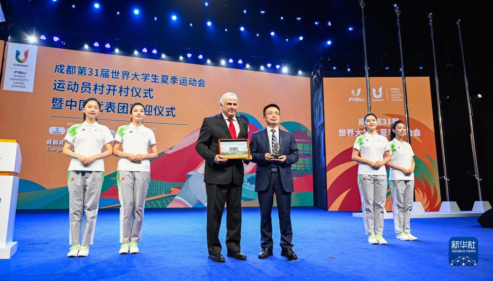 當日,成都第31屆世界大學(xué)生夏季運動(dòng)會(huì )運動(dòng)員村開(kāi)村儀式舉行。