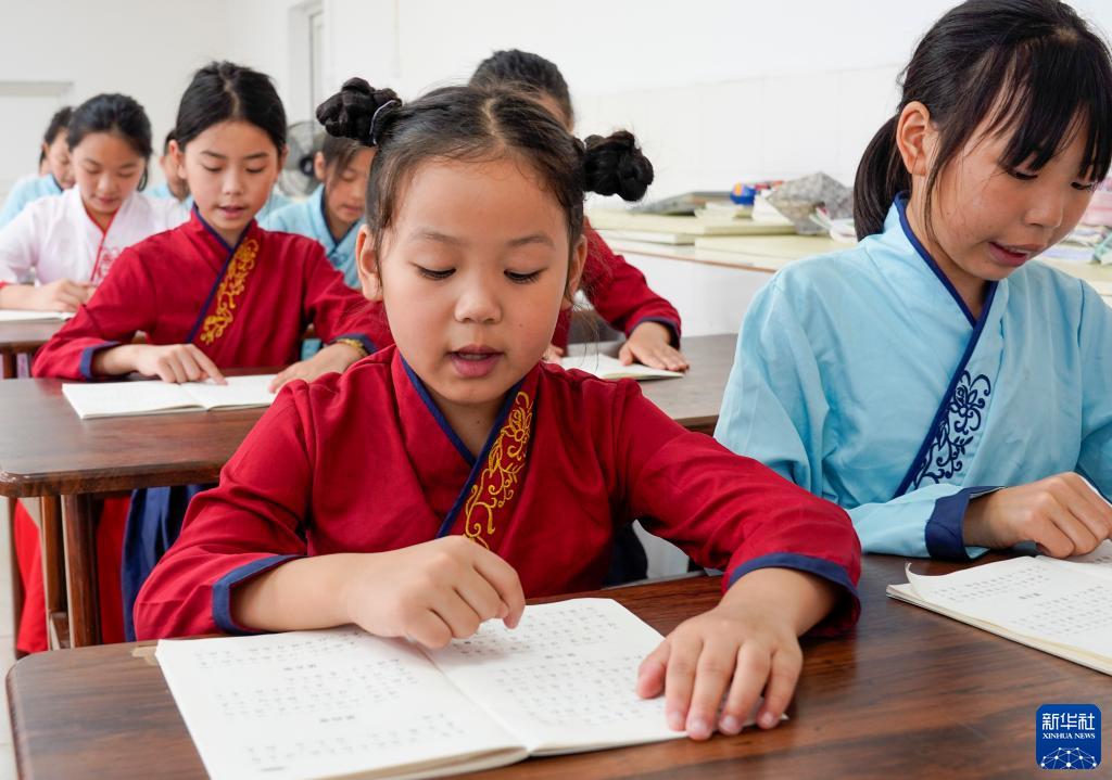 7月22日,萬(wàn)州區恒合土家族鄉一個(gè)研學(xué)基地內,參加暑期避暑研學(xué)活動(dòng)的學(xué)生在誦讀經(jīng)典古詩(shī)詞。