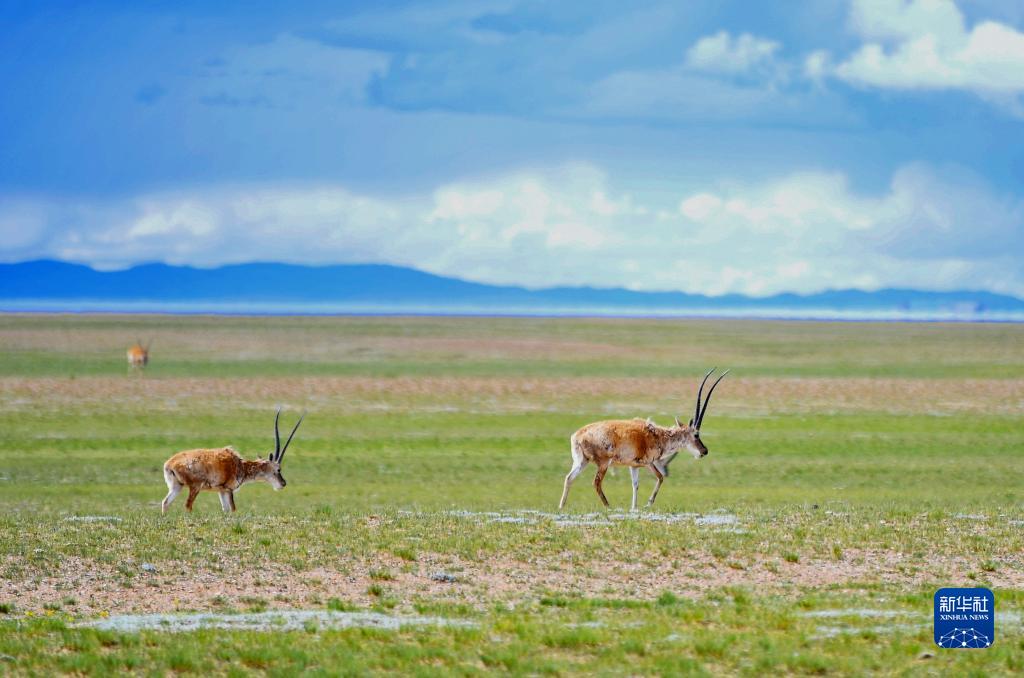色林錯畔草原上的藏羚羊(7月11日攝)。