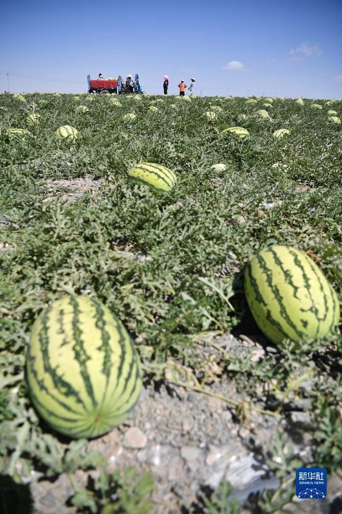 農戶(hù)在中衛市沙坡頭區香山鄉收獲硒砂瓜(7月21日攝)。