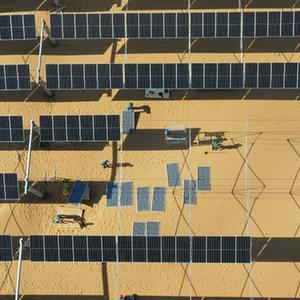 近日,位于內蒙古杭錦旗庫布其沙漠億利生態(tài)示范區的蒙西基地庫布其200萬(wàn)千瓦光伏治沙項目進(jìn)入光伏板安裝環(huán)節。據了解,該項目總投資111.5億元,包括200萬(wàn)千瓦光伏場(chǎng)區、10萬(wàn)畝沙漠治理生態(tài)建設工程等。項目預計2024年底前實(shí)現全容量并網(wǎng)發(fā)電,建成后年平均可供應綠色電力約40億千瓦時(shí)。
