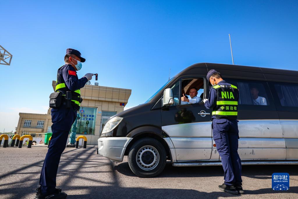 7月21日,霍爾果斯出入境邊防檢查站執勤民警在對入境車(chē)輛進(jìn)行查驗。