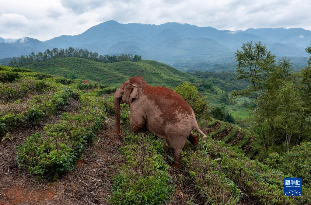 一頭亞洲象在云南省江城縣一處茶園里活動(dòng)(7月19日攝,無(wú)人機照片)。