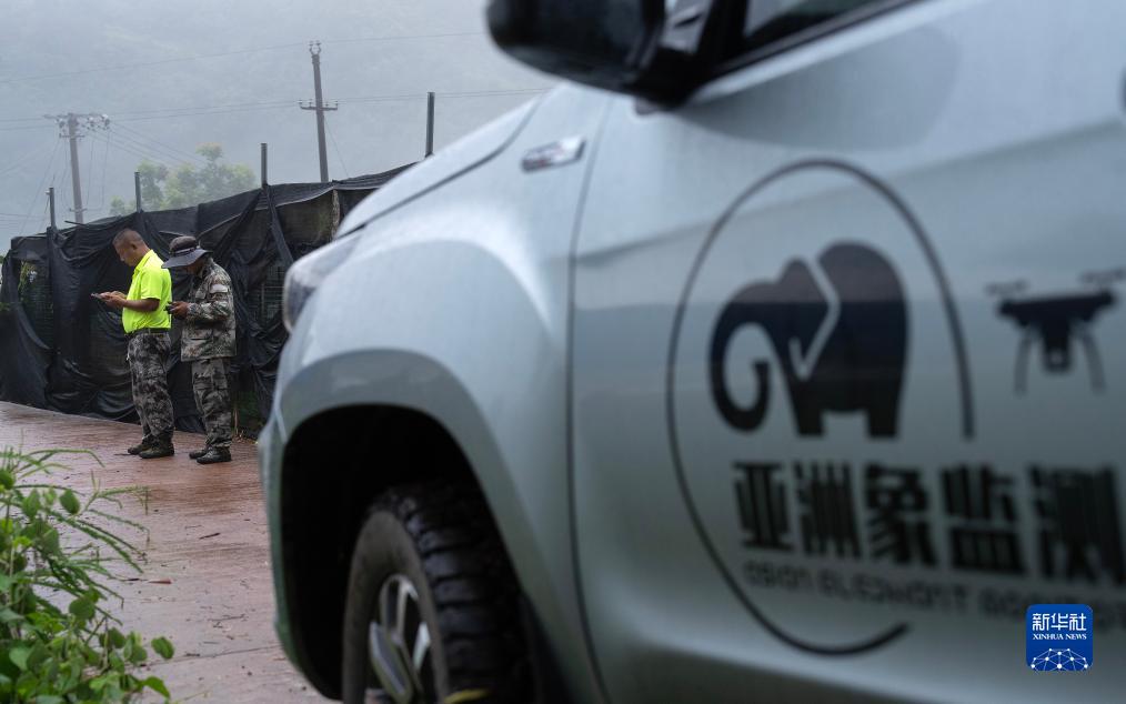 7月20日清晨,李江偉(右)操作無(wú)人機監測亞洲象的行蹤,刁發(fā)興在一旁將相關(guān)信息發(fā)布到附近村民所在的微信群。
