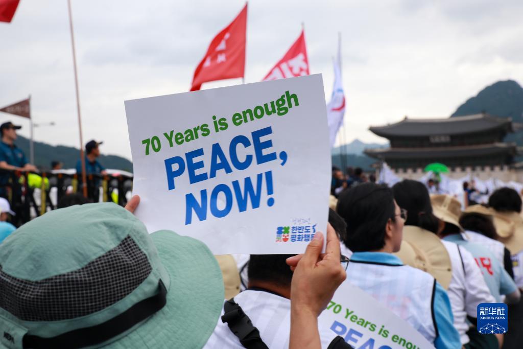 韓國民間團體“停戰70年朝鮮半島和平行動(dòng)”7月22日在首爾市中心舉行反戰游行活動(dòng),反對韓美日加強軍事合作,呼吁停止制造半島軍事緊張,打造和平共存、合作共贏(yíng)的亞洲。