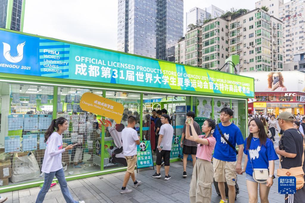 7月19日,在成都市春熙路步行街,人們在大運會(huì )官方特許商品零售店前駐足。