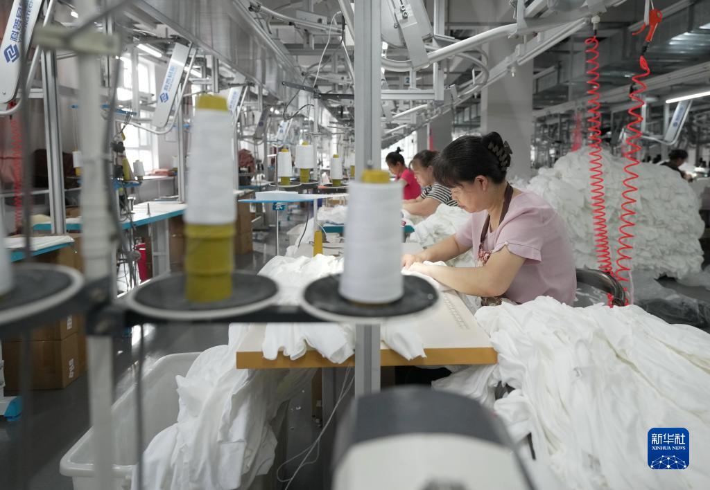 7月23日,工人在肅寧縣一家針紡服裝企業(yè)生產(chǎn)車(chē)間工作。