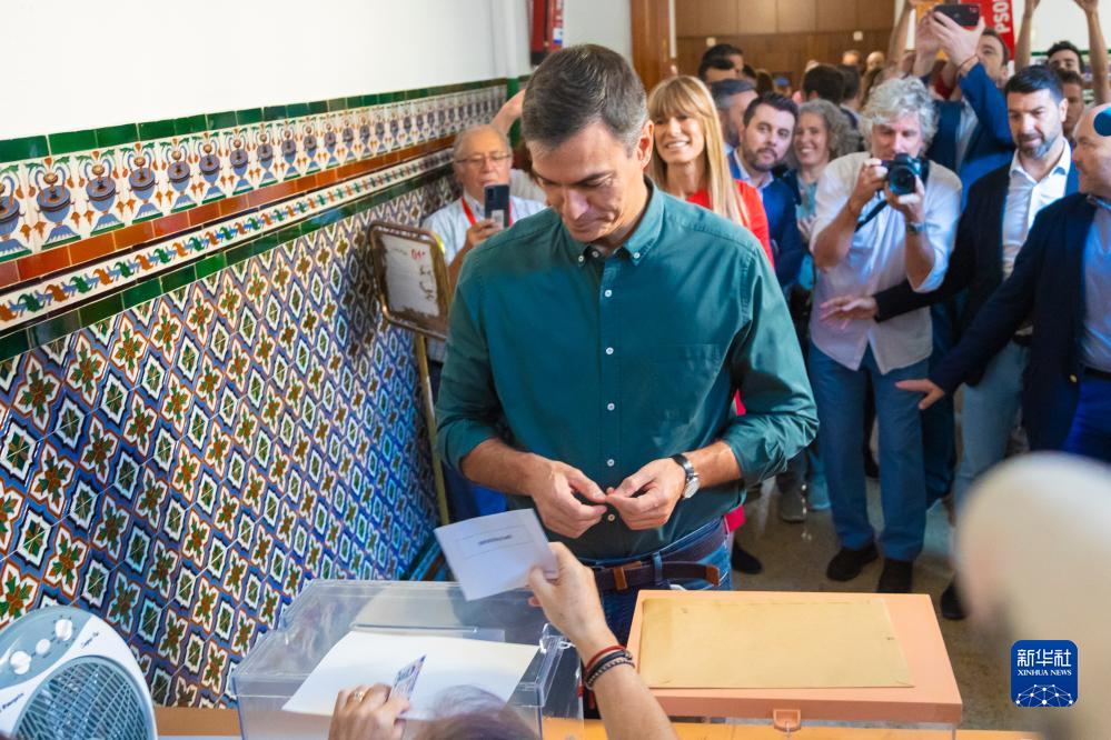 7月23日,西班牙首相桑切斯在馬德里一處投票點(diǎn)內投票。