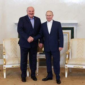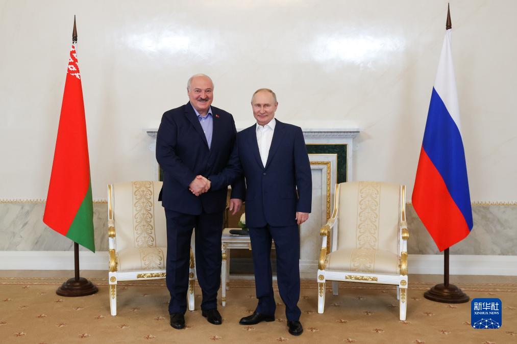 7月23日,在俄羅斯圣彼得堡,俄羅斯總統普京(右)與白俄羅斯總統盧卡申科握手。