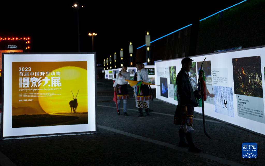7月23日,人們在青海玉樹(shù)格薩爾廣場(chǎng)參觀(guān)2023首屆中國野生動(dòng)物攝影大展預展。
