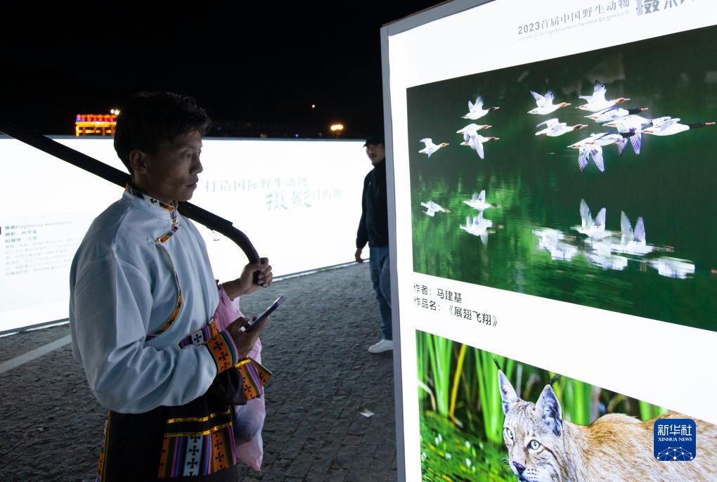 7月23日,人們在青海玉樹(shù)格薩爾廣場(chǎng)參觀(guān)2023首屆中國野生動(dòng)物攝影大展預展。