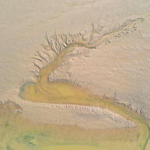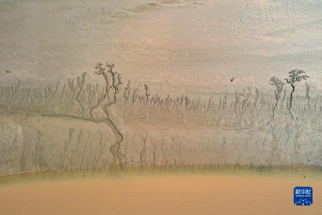 近日,隨著(zhù)黃河調水調沙結束,黃河河南省開(kāi)封市黑崗口險工段水位下降。河床被水流沖刷過(guò)后呈現出縱橫交錯的“脈絡(luò )”。
