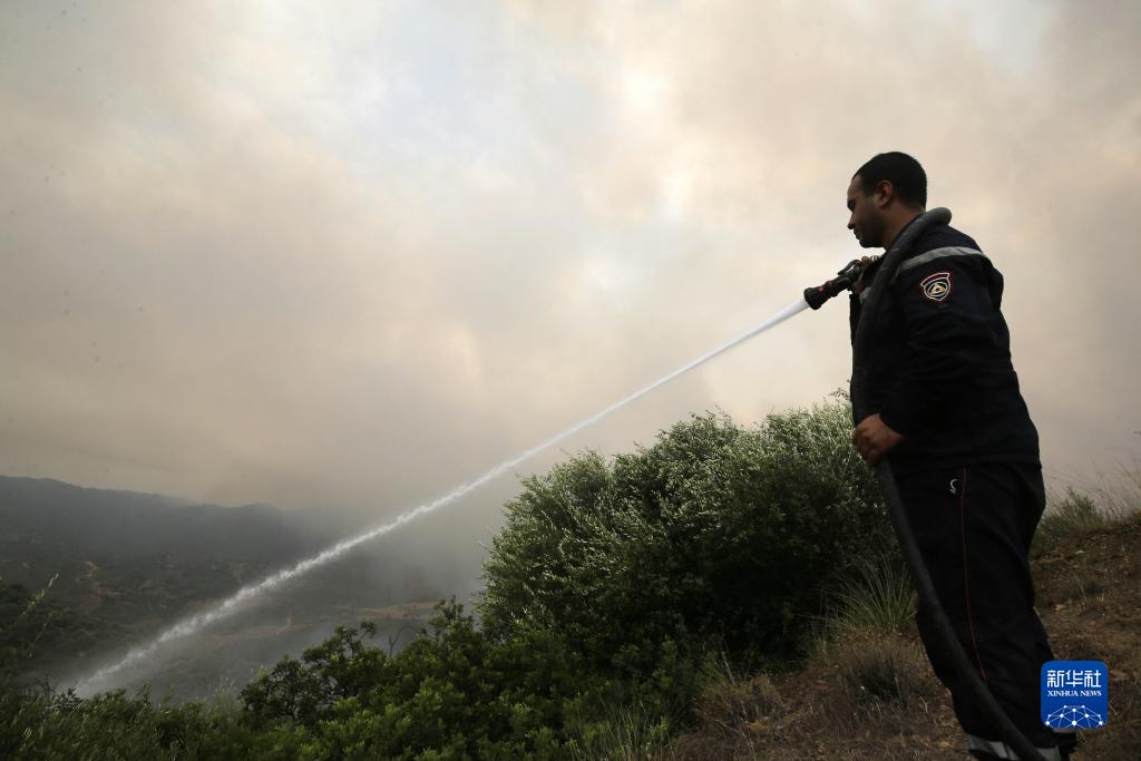 7月24日,阿爾及利亞布維拉省民防人員在滅火。