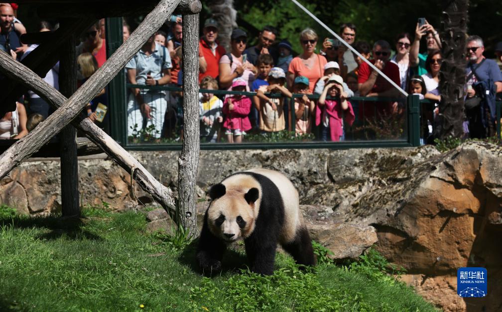 7月24日,在法國圣艾尼昂市博瓦勒野生動(dòng)物園,人們觀(guān)看“圓夢(mèng)”。