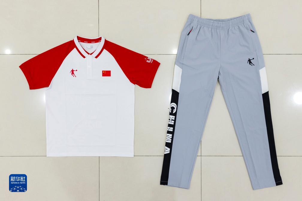 這是7月24日拍攝的第31屆世界大學(xué)生夏季運動(dòng)會(huì )中國代表團成員配發(fā)裝備中的POLO短T恤衫和長(cháng)褲。