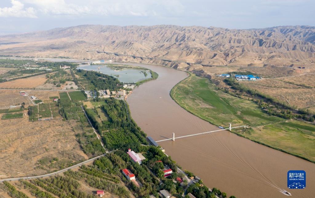7月19日拍攝的植被覆蓋的中衛市黃河沿岸(無(wú)人機照片)。