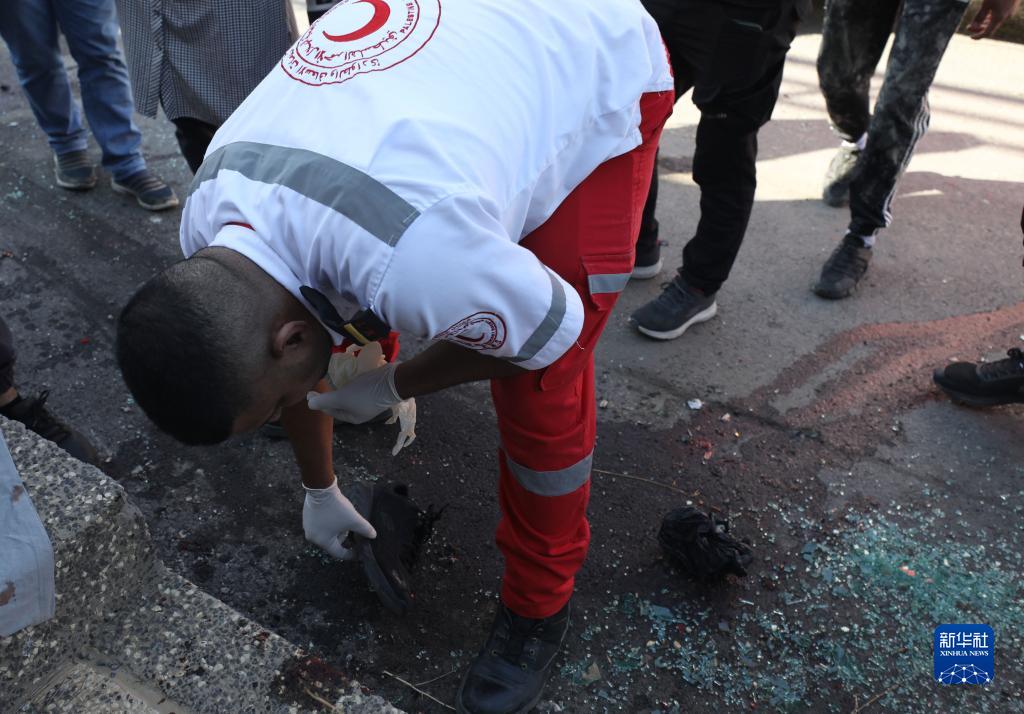 7月25日,巴勒斯坦醫護人員在約旦河西岸城市納布盧斯事發(fā)現場(chǎng)工作。