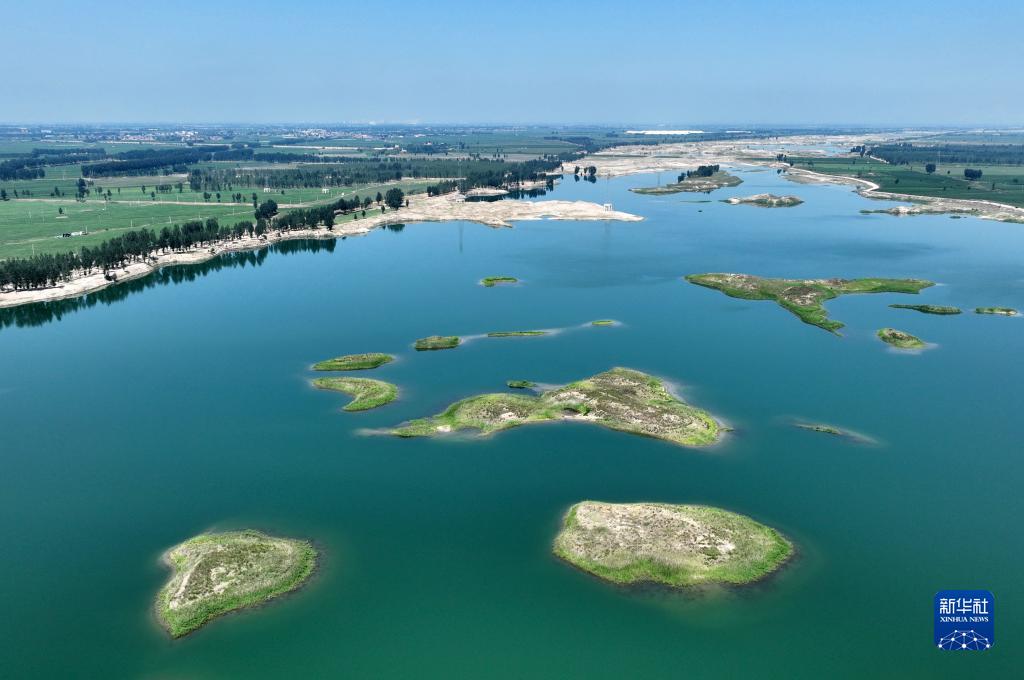 7月25日拍攝的河北省新樂(lè )市境內的大沙河景色(無(wú)人機照片)。