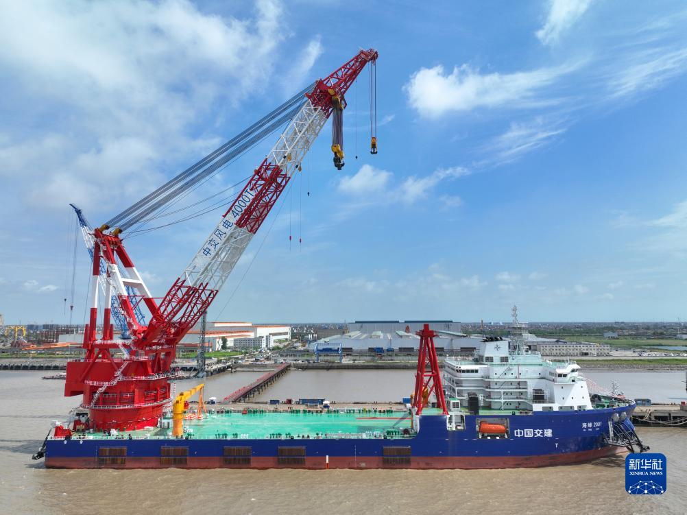 7月25日在振華重工啟東海工碼頭拍攝的4000噸全回轉起重船“海峰2001”(無(wú)人機照片)。